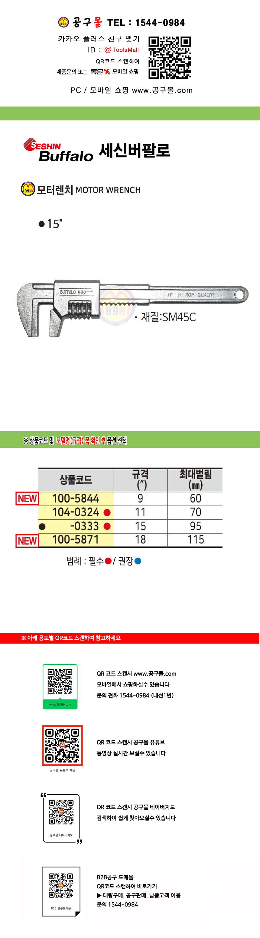 세신 모터렌치 230mm (9)/ 280mm (11) SESHIN BUFFALO, 세신공구, 버팔로 공구몰 100-5844