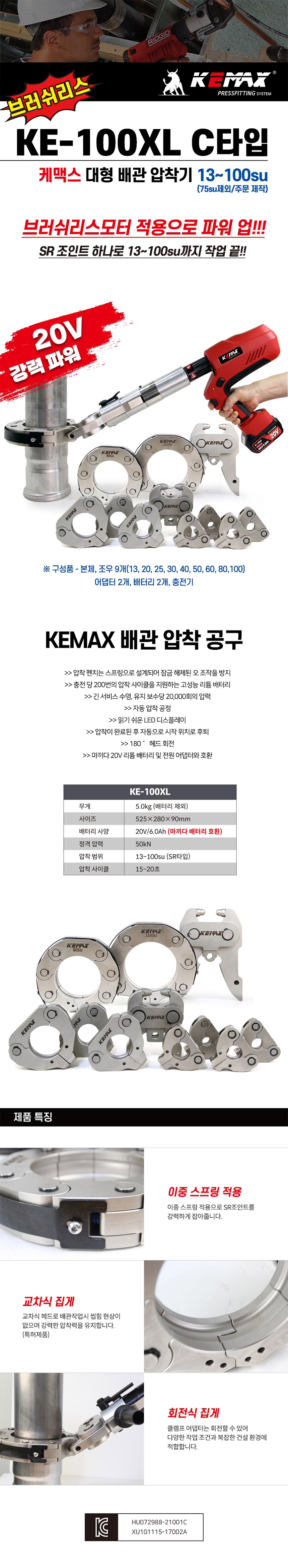 케맥스 충전배관압착기BL (SET) KE-100XL 13-100SU 20V 6.0Ah 2팩 C타입 배관공구 KE100XLC