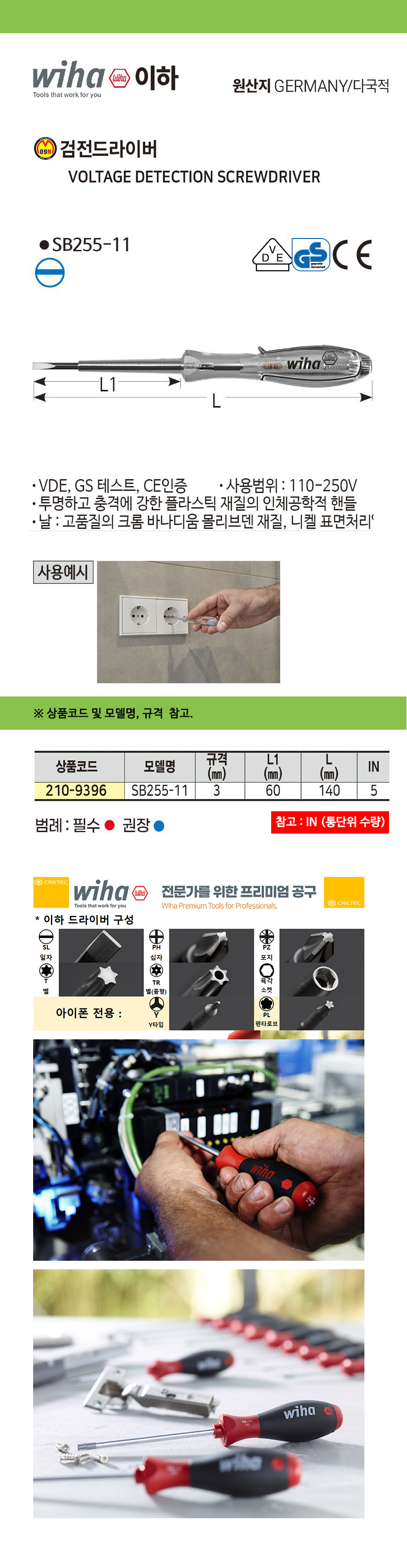 이하 검전드라이버 SB 255-11 (110v-250v) wiha 드라이버 공구몰 210-9396
