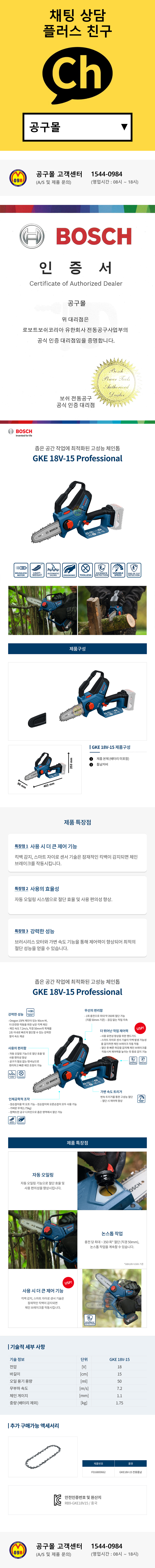 보쉬 충전체인톱 GKE18V-15 (18V-베어툴) 미니톱 가지용 전정용