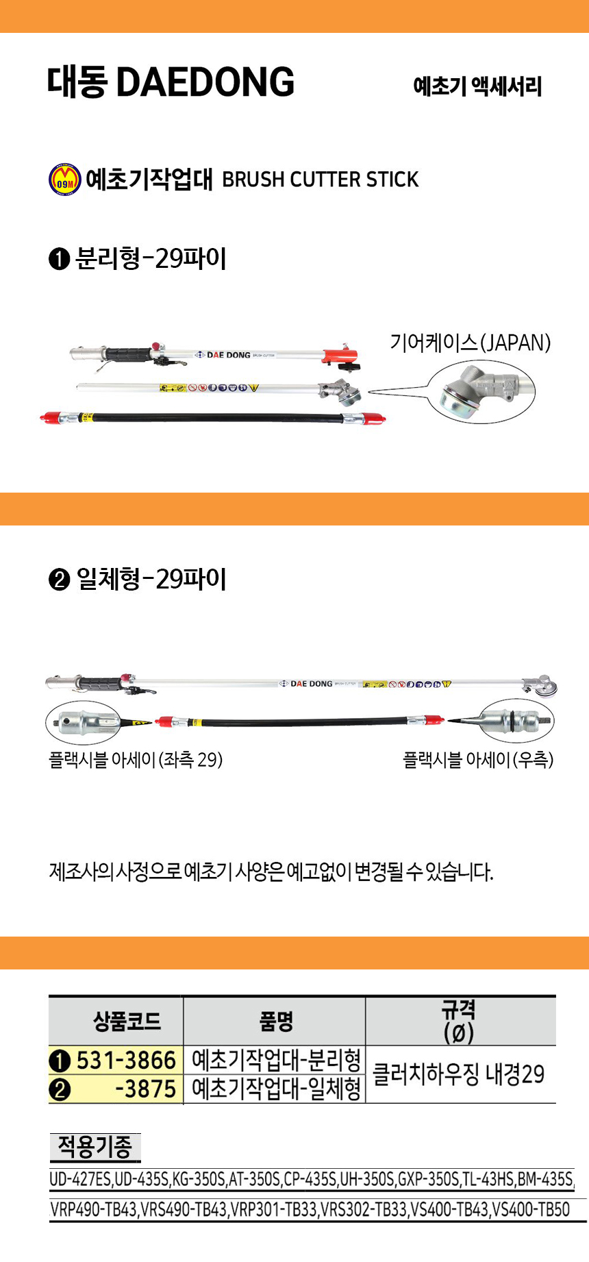 대동 예초기 플랙시블 850mm/ 870mm 부품, 부속 공구몰 531-2803