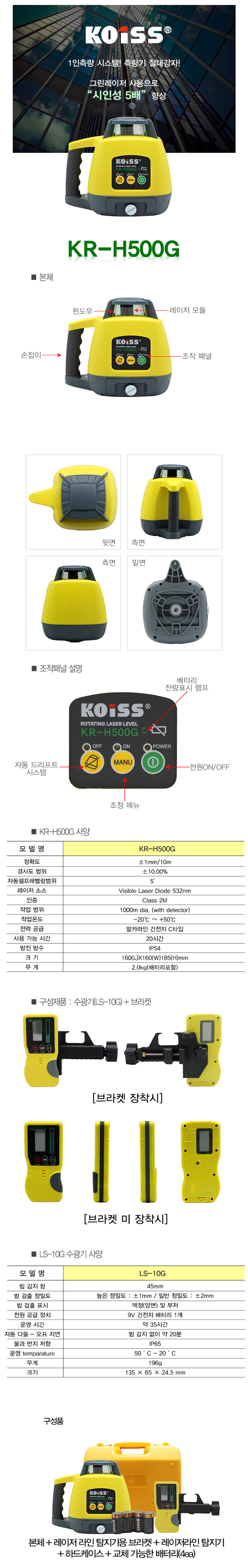 코이스 레이저수평(회전형,그린) KR-H500G (수광기별매) KOISS 427-3376