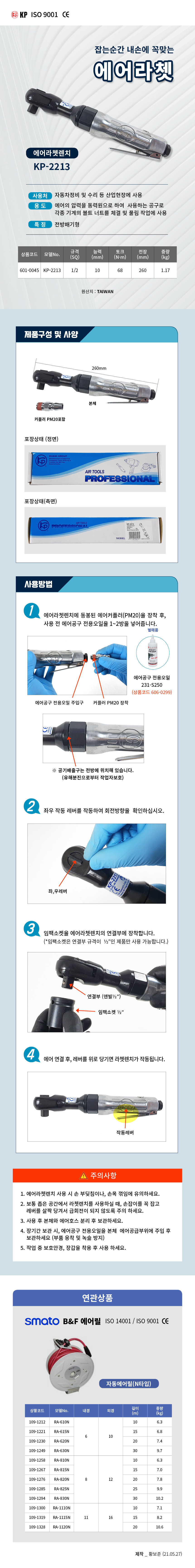 KP 에어라쳇트렌치 KP-2213 (1/2SQ) 에어공구, 에어라체트 공구몰 601-0045