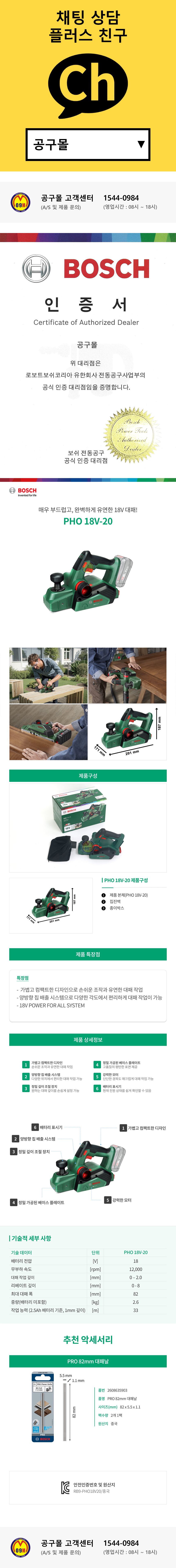 보쉬 전기대패 GHO20-82 (700W) 무선 대페 배터리 충전기 미포함