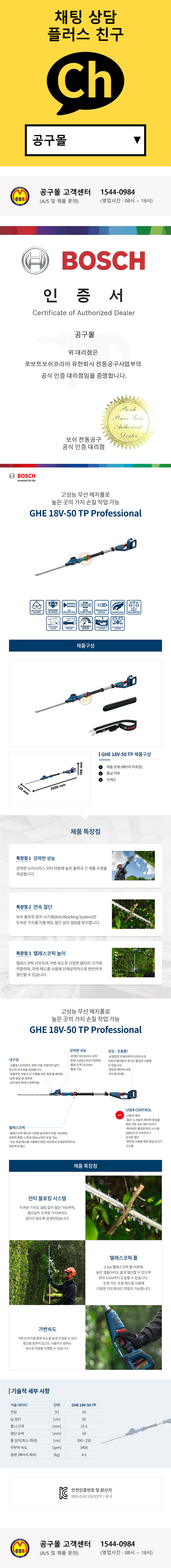 보쉬 충전고지전정기 GHE18V-50TP (18V-베어툴) 고지트리머 헤지커터