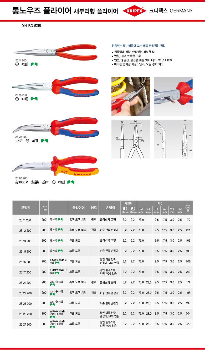 크니펙스 플라이어(롱노우즈,절연) 26-15-200, 26-15-200SB Knipex 독일공구, 공구몰 101001020087