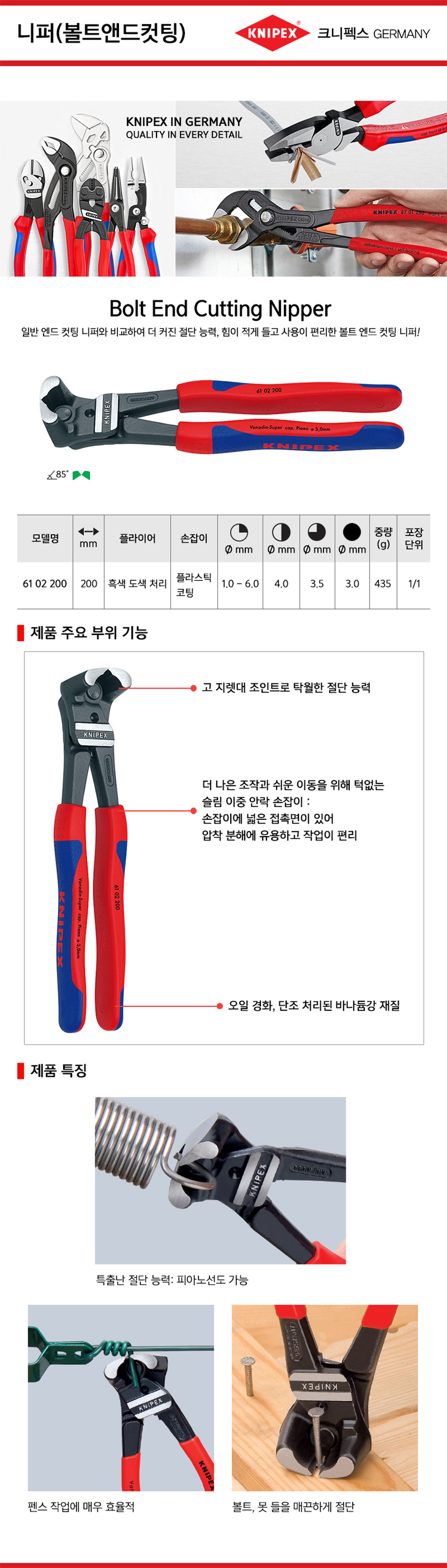 크니펙스 니퍼(볼트앤드컷팅) 61-02-200 Knipex 독일공구, 수공구 작업공구 공구몰 101001020095
