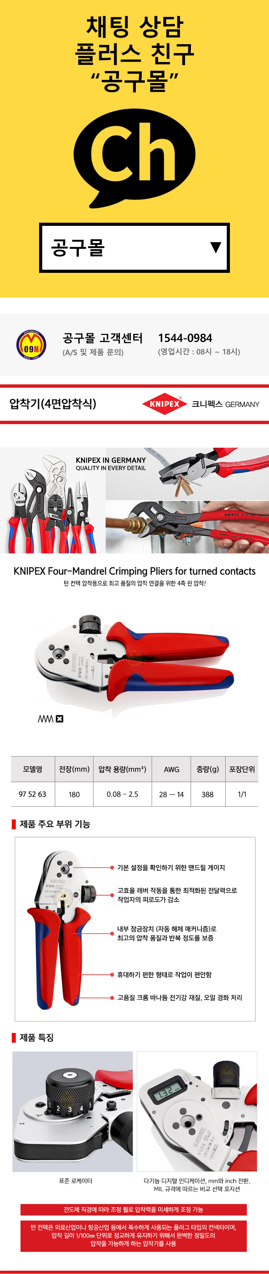 크니펙스 압착기(4면압착기) 97-52-63DG Knipex 턴컨택, 디지털, 정밀, 특수플러그, 독일공구, 공구몰, 101011370435