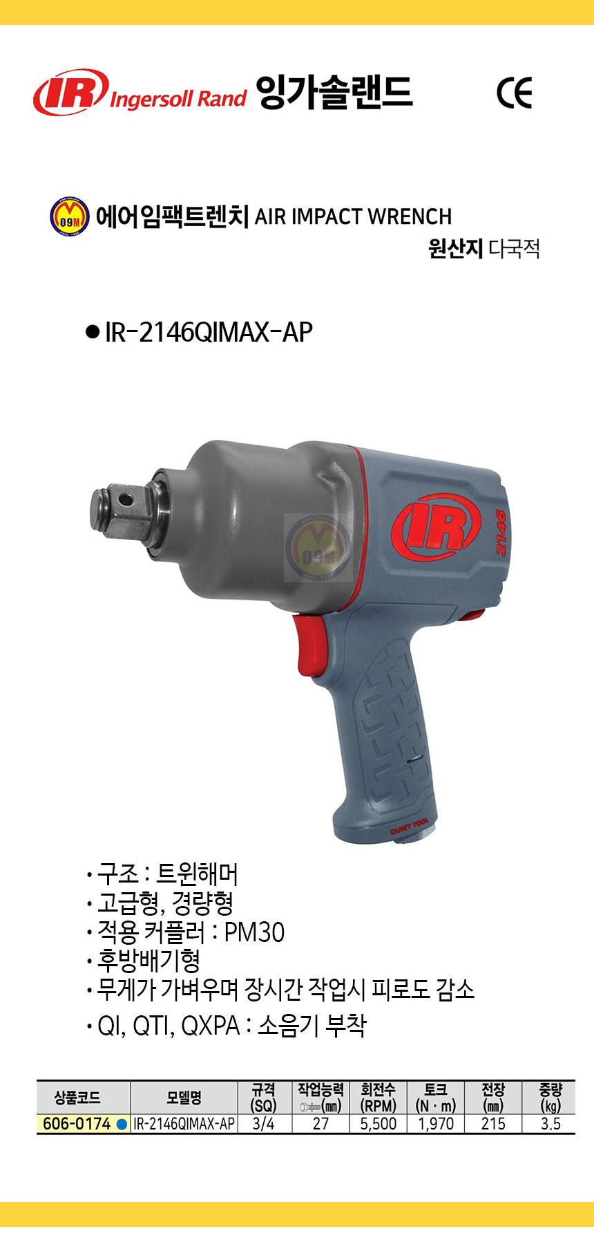 잉가솔랜드 에어임팩트렌치 IR-2146QIMAX-AP (3/4SQ) 에어렌치, INGERSOLL RAND 공구몰 추천 C606-0174