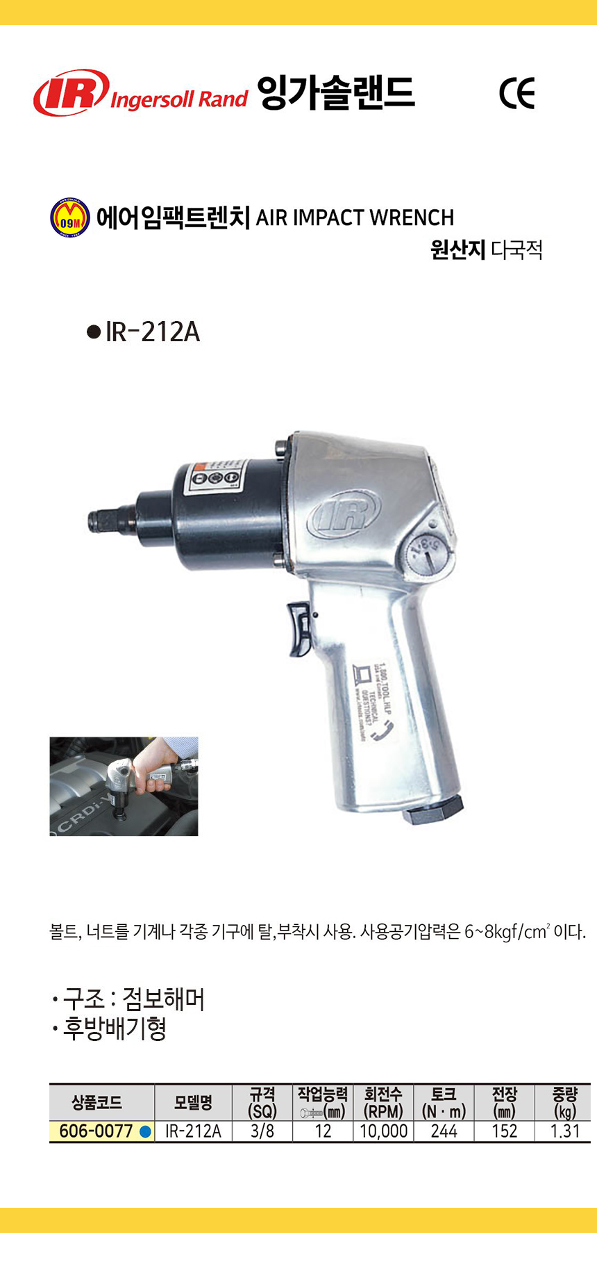 잉가솔랜드 에어임팩트렌치 IR-212A (3/8SQ) 에어렌치, INGERSOLL RAND 공구몰 추천 C606-0077