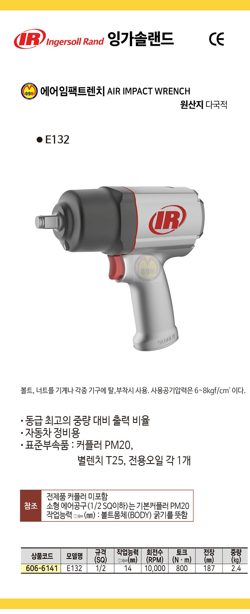 잉가솔랜드 에어임팩트렌치 E132 (1/2SQ) 에어렌치, INGERSOLL RAND 공구몰 추천 C606-6141
