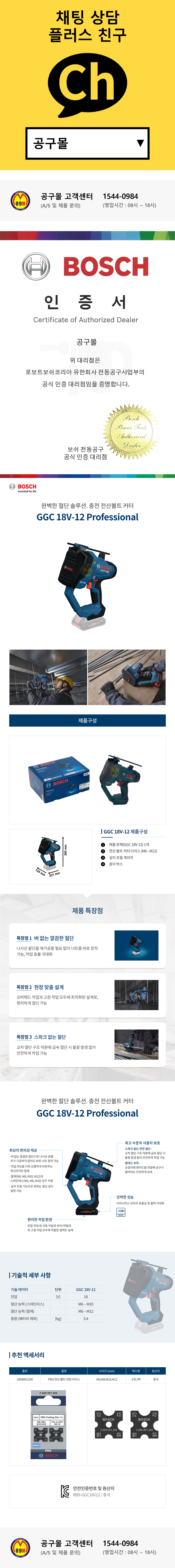 보쉬 충전전산볼트커터 GGC18V-12 (18V-베어툴) 무선 전산볼트캇타