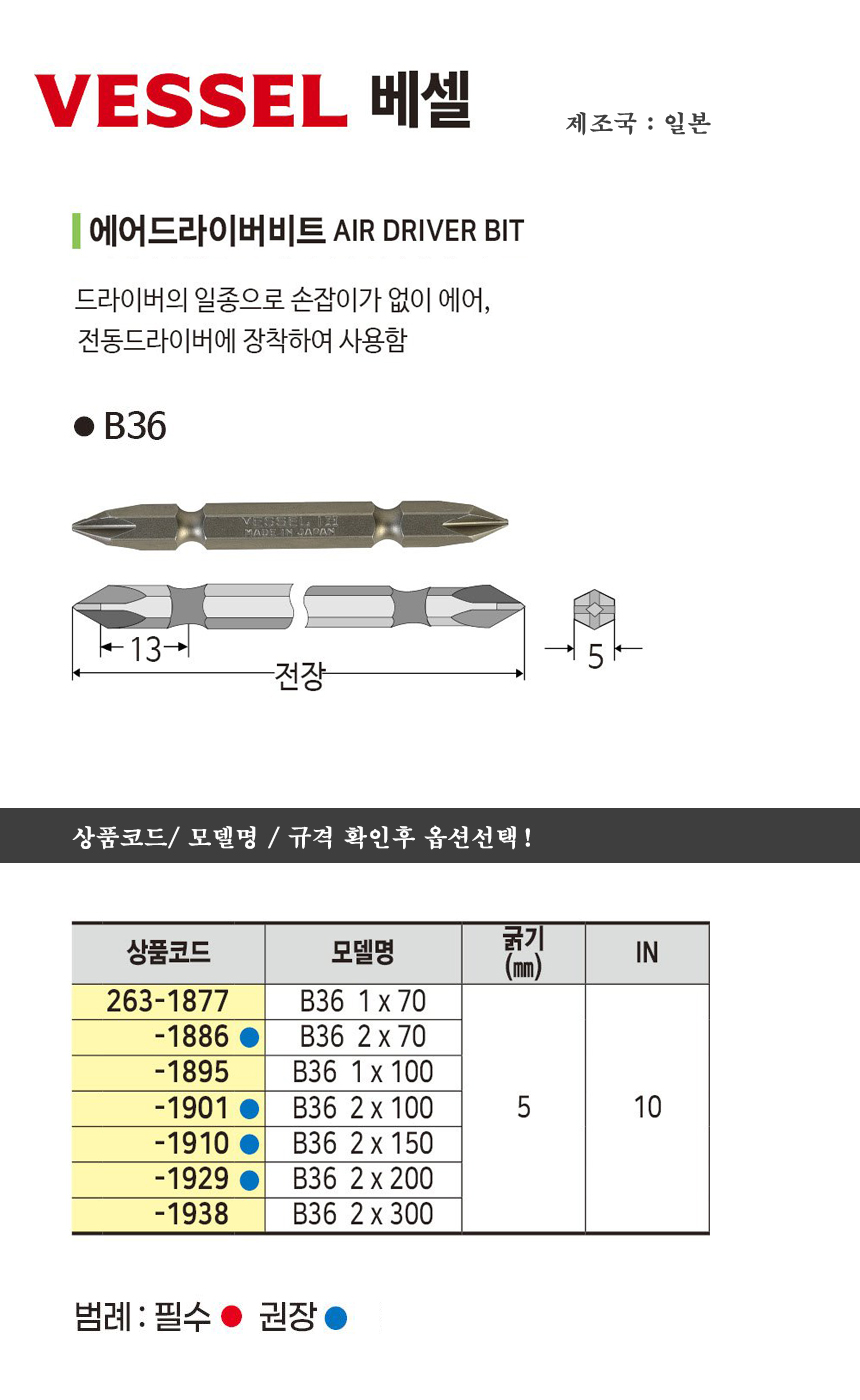 베셀 에어드라이버빗트 B36x1x70/ B36x2x150 VESSEL