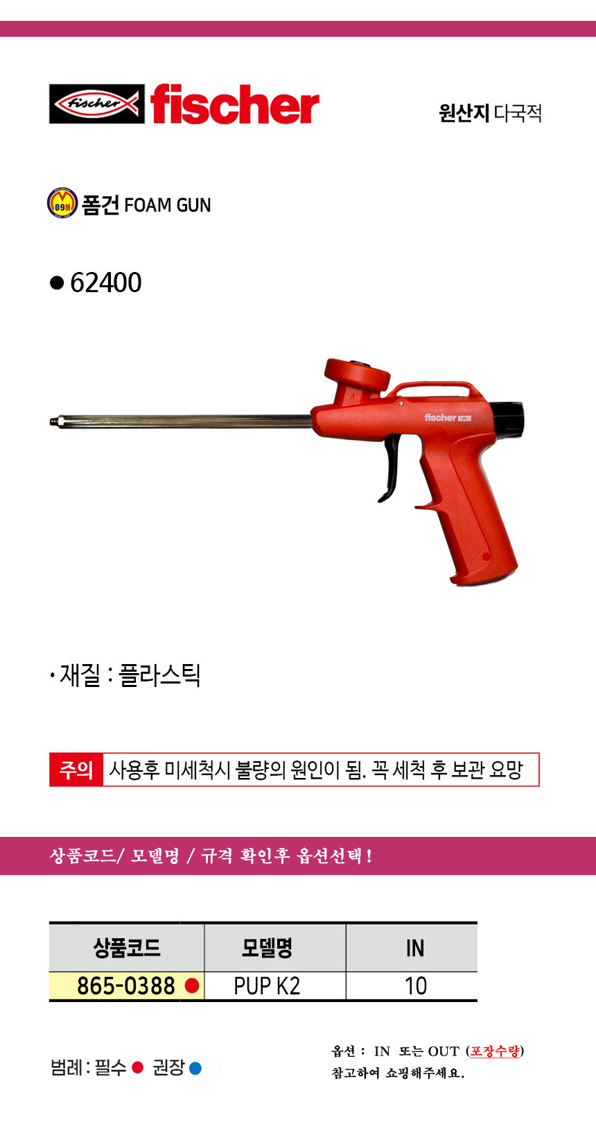 피셔 폼건(플라스틱형) PUP K2 / NO.62400 fischer, 공구몰 865-0388