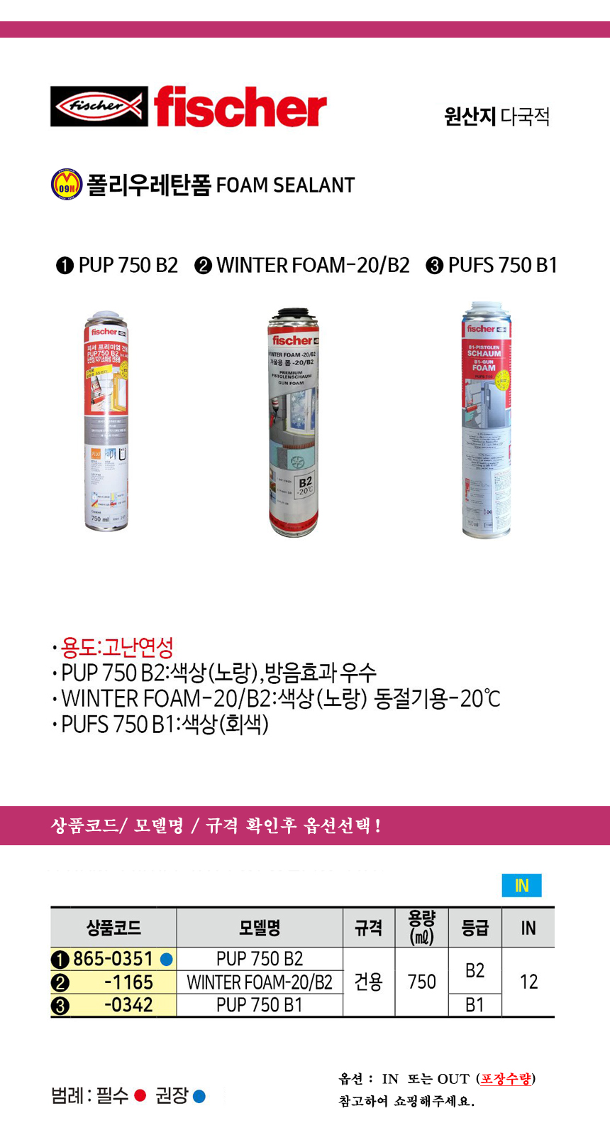 피셔 폴리우레탄폼(난연성) 건용/ PUP 750 B2 / NO.44503 fischer, 공구몰 865-0351