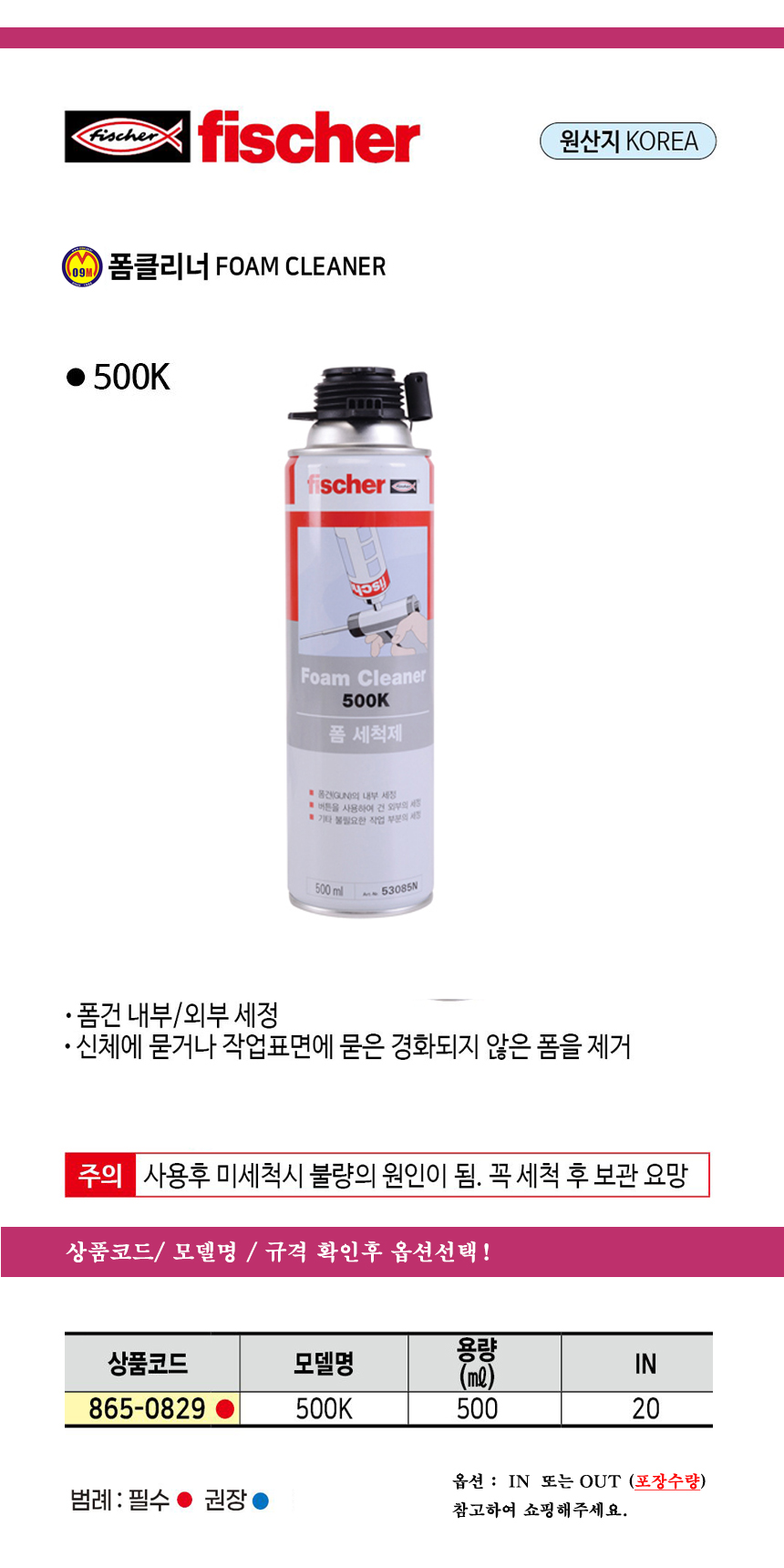피셔 폼클리너 500K 500ml NO.700071 fischer, 공구몰 865-0829
