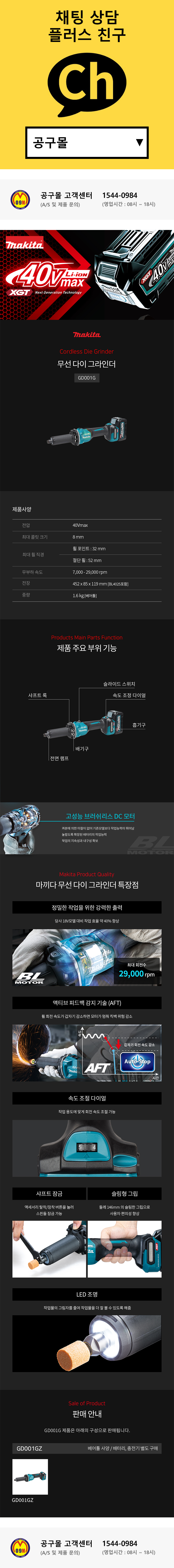 마끼다 40V 충전다이그라인더 GD001GZ (40V-베어툴) 무선다이그라인더