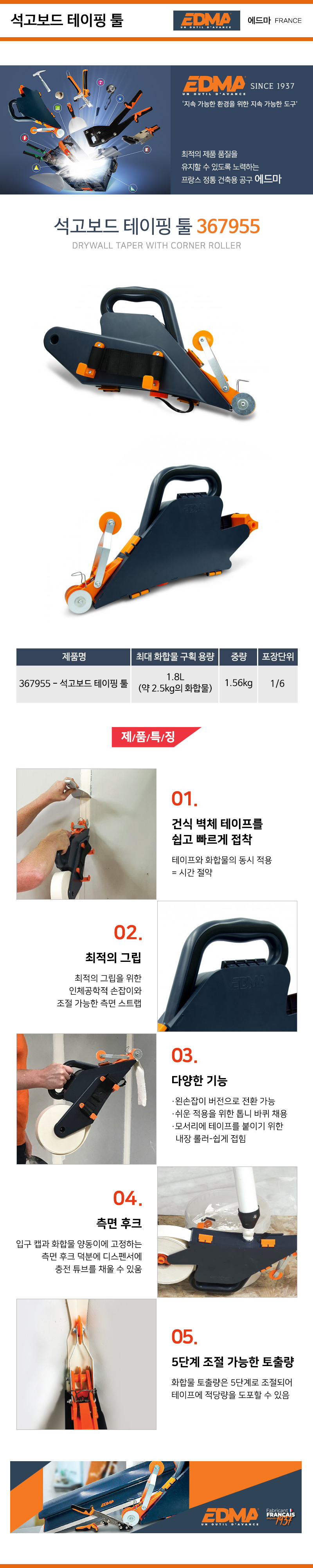 EDMA 석고보드 테이핑툴 367955 1.8L(약2.5kg) 에드마 공구몰