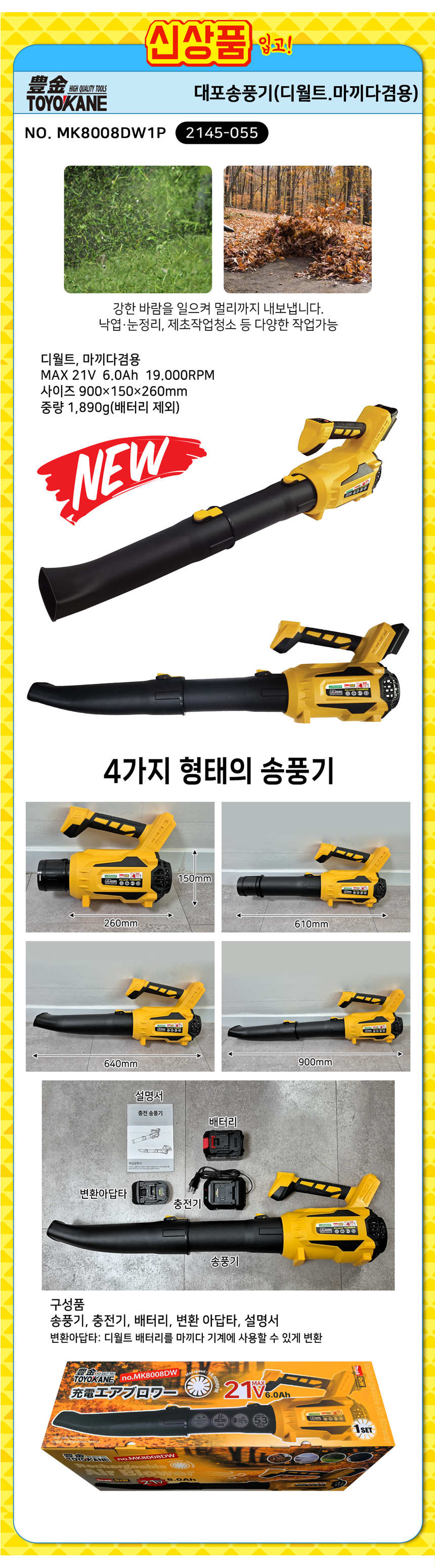 토요카네 대포송풍기 MK8008DW1P 1팩x6Ah 브로워 (디월트.마끼다겸용) TOYOKANE