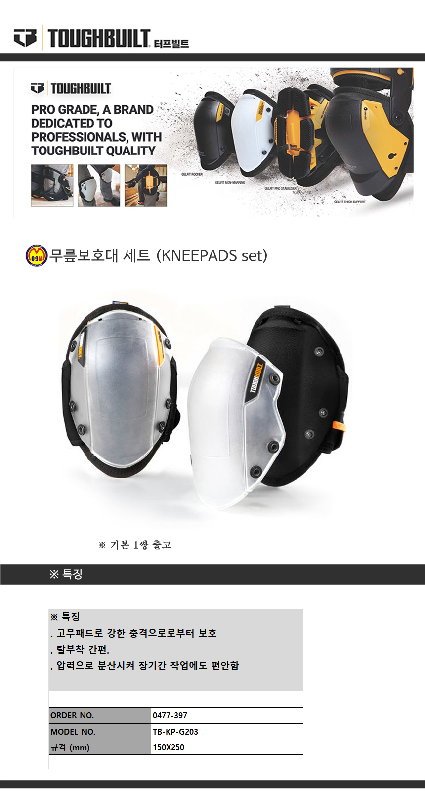 터프빌트 무릎보호대 세트 TB-KP-G203 (1쌍) (TOUGH BUILT) 고무 / 탈부착가능 0477397