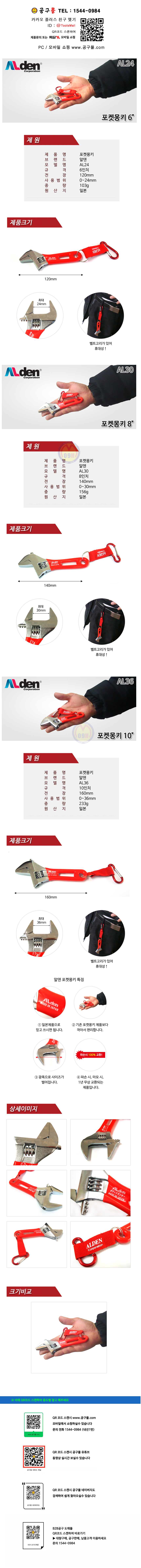 알덴 포켓몽키 AL24/AL30/AL36 (전장6/8/10) ALDEN,몽키스패너,스패너,1036-266