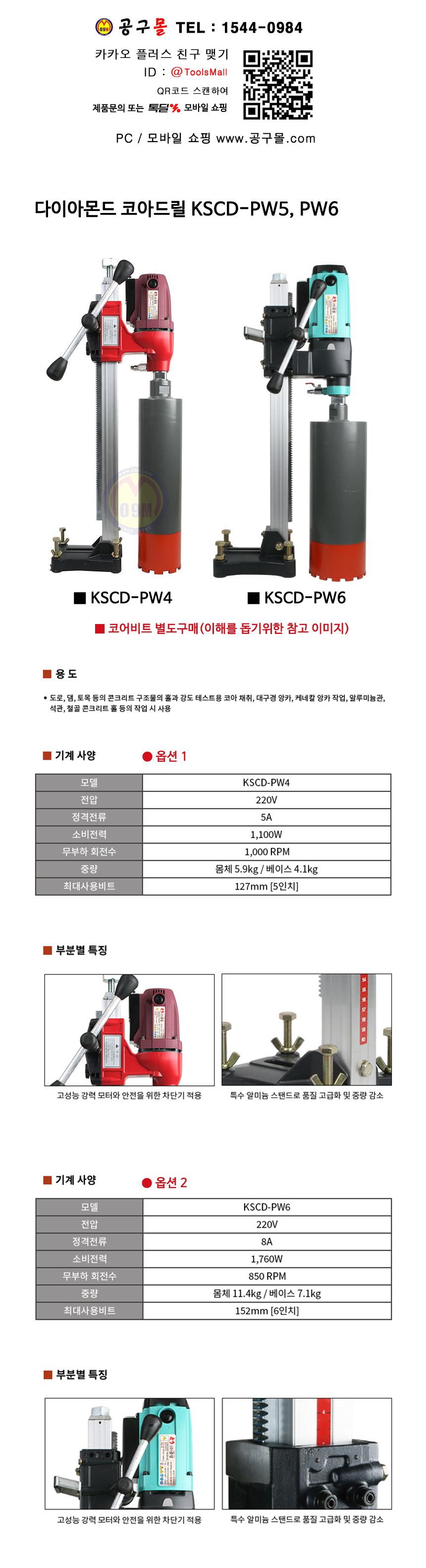 공성 코아드릴 KSCD-PW6 공구몰, 습식코아드릴, 565-0280