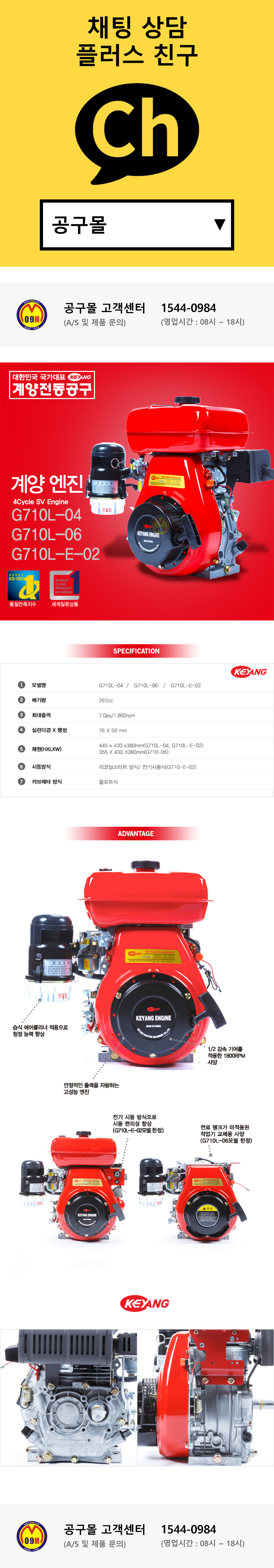 계양 4사이클 SV엔진 G710L-E-02 키시동 KEYANG 공구몰, 8640032