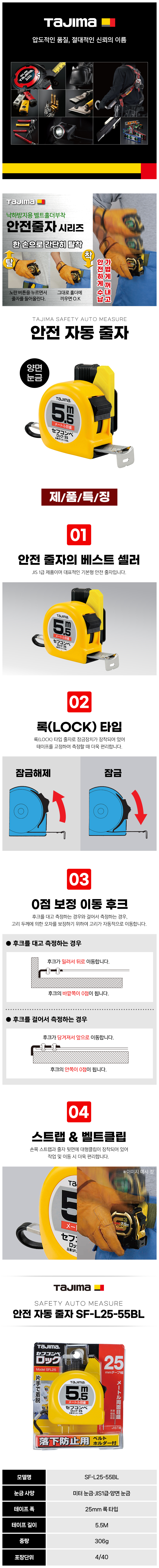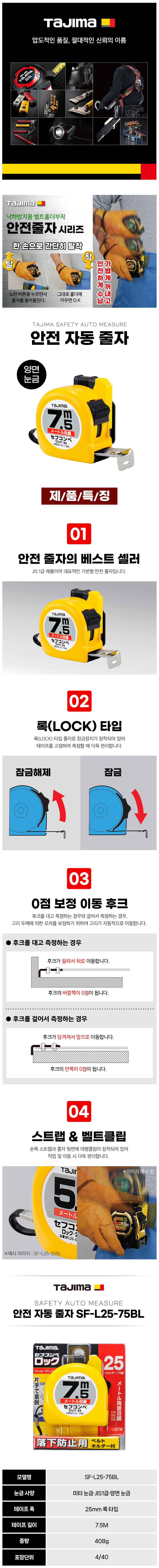 타지마 자동줄자(안전) SF-L25-55BL, SF-L25-75BL TAJIMA 141402450304