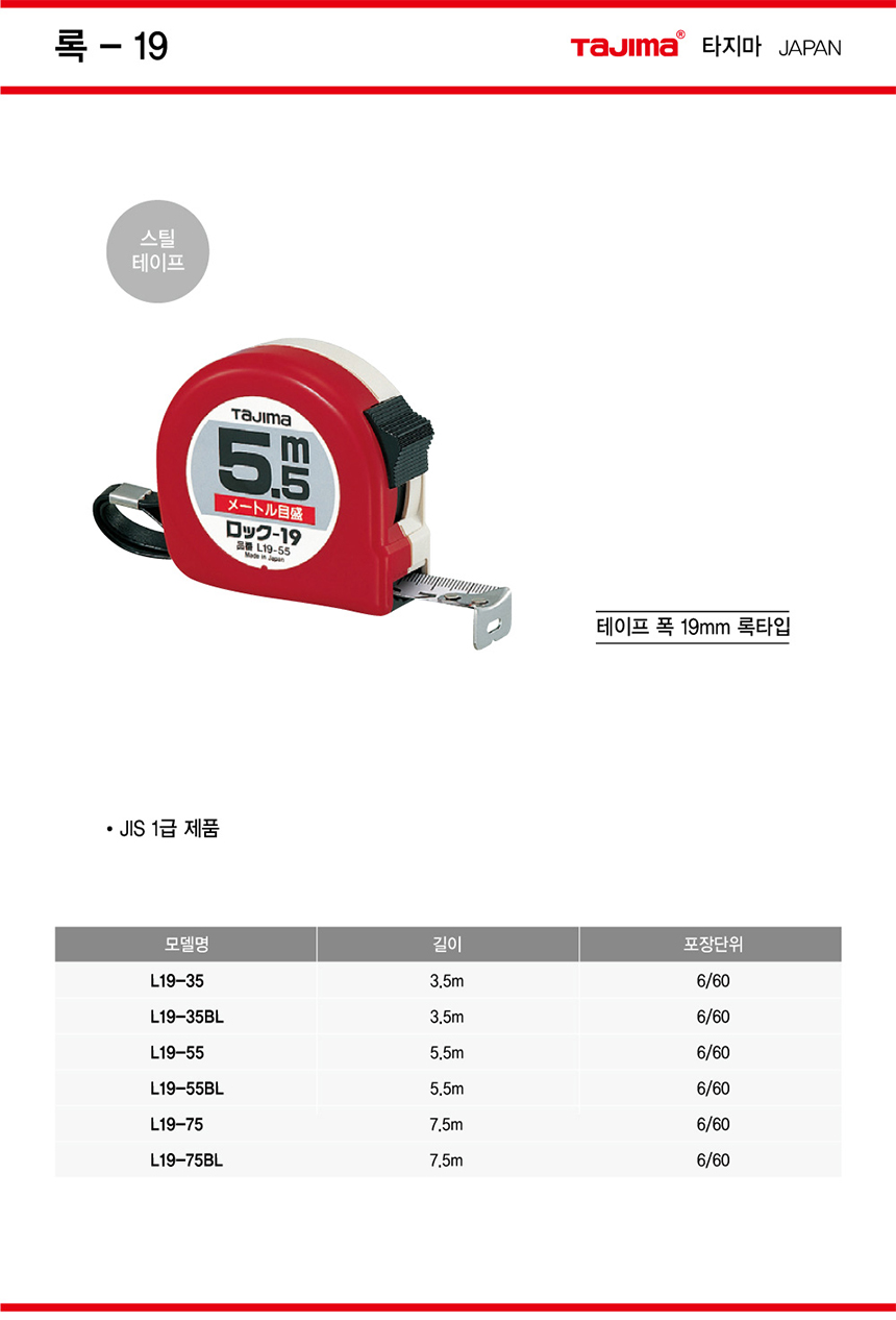 타지마 자동줄자 L19-55, L19-55BL (폭19mm-5.5M) TAJIMA 141402450240