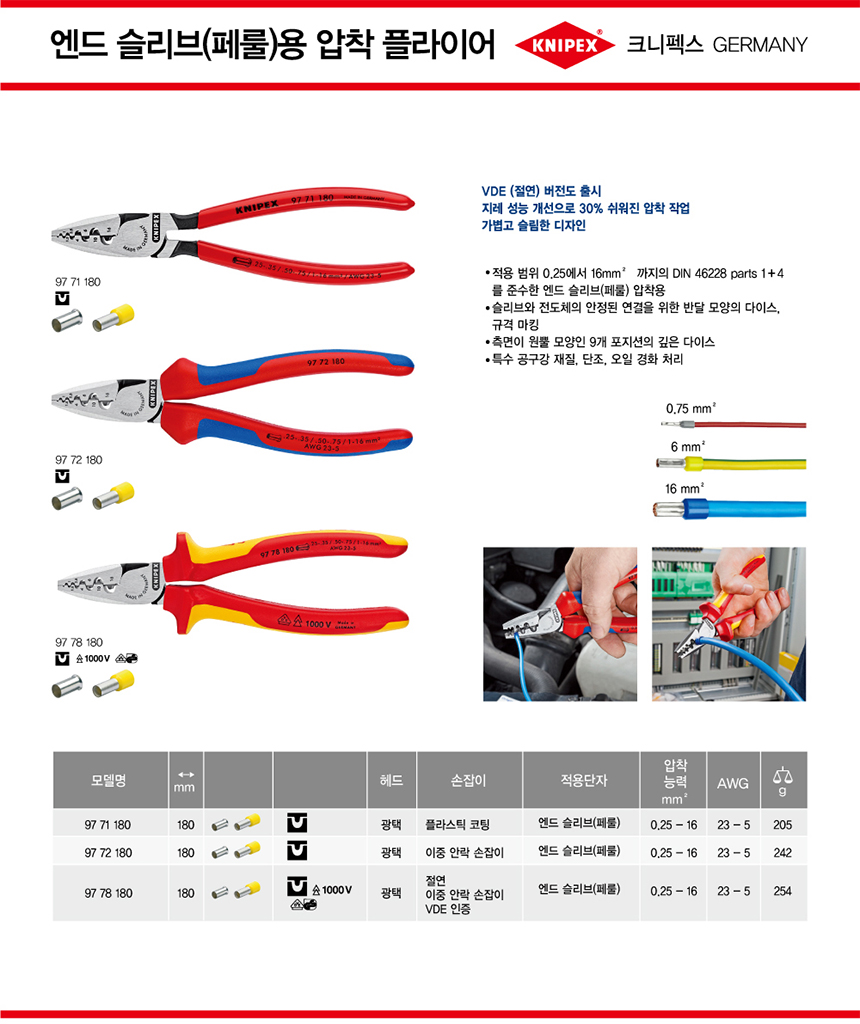 크니펙스 압착기(페룰) 97-71-180, 97-71-180SB KNIPEX 독일공구, 수공구 작업공구 공구몰 101011370201