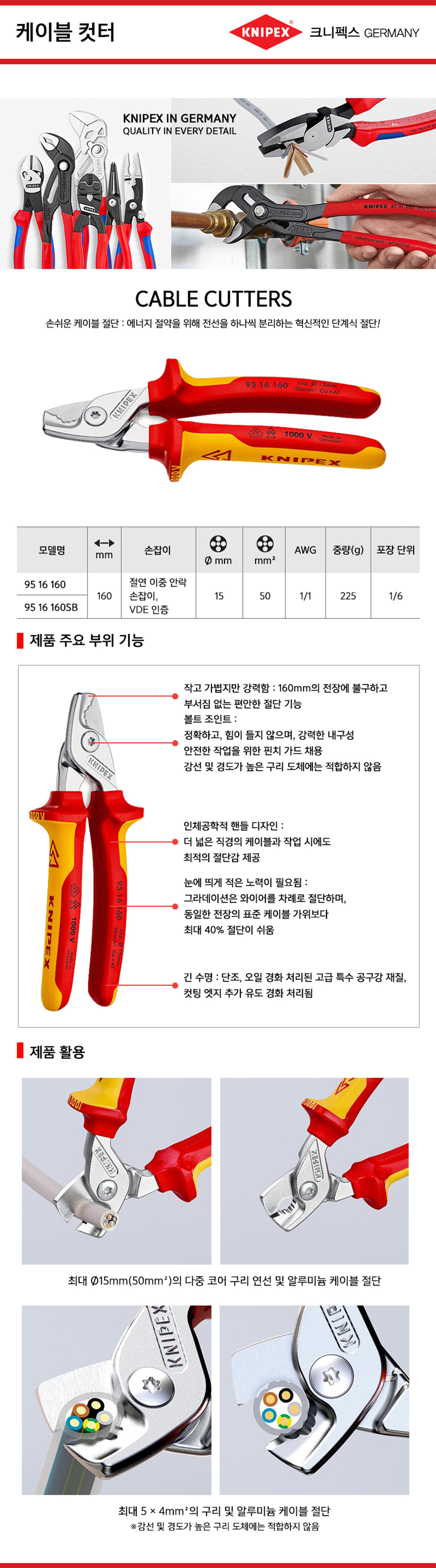 크니펙스 케이블컷터(절연,StepCut) 95-16-160, 95-16-160SB 전선커터 KNIPEX 독일공구, 수공구, 공구몰추천 101013660312