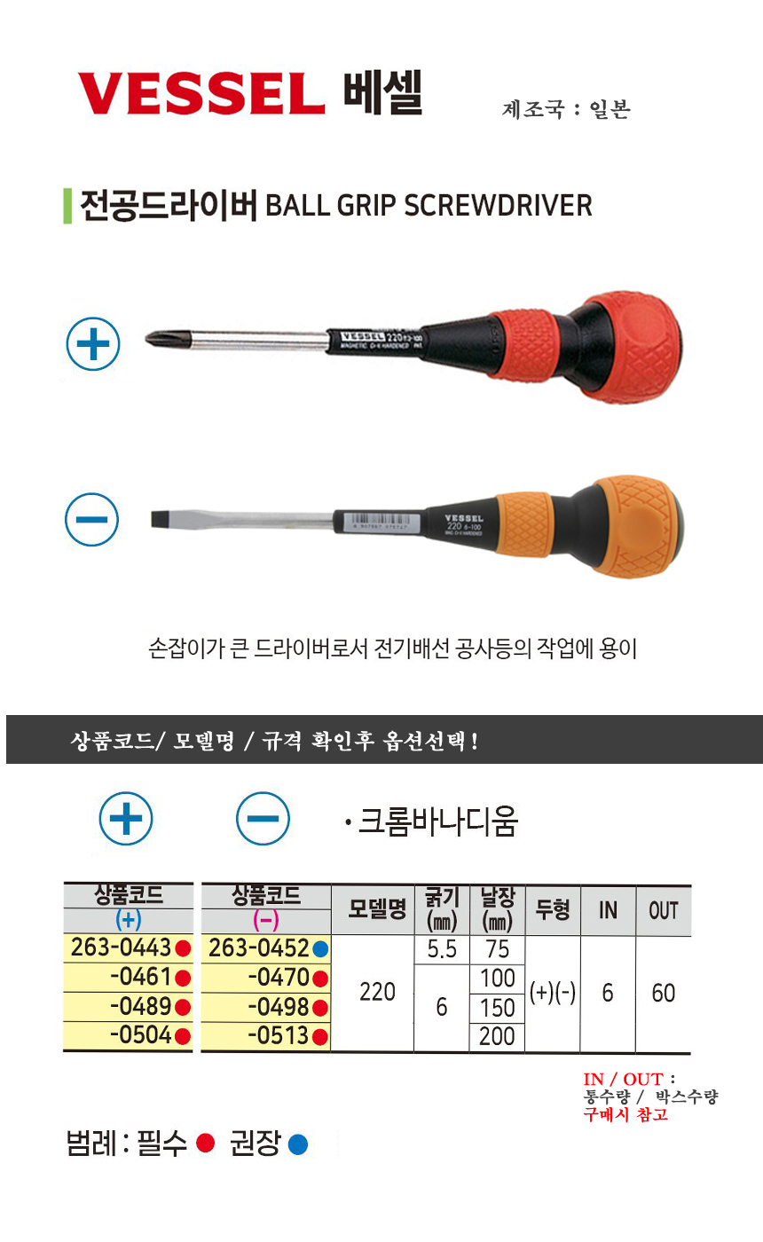 베셀 전공드라이버 220 십자75mm/ 일자200mm VESSEL
