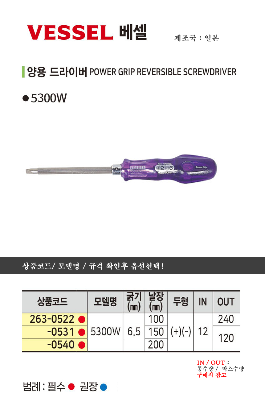 베셀 양용드라이버 5300W 6.5x100mm/150mm/200mm VESSEL