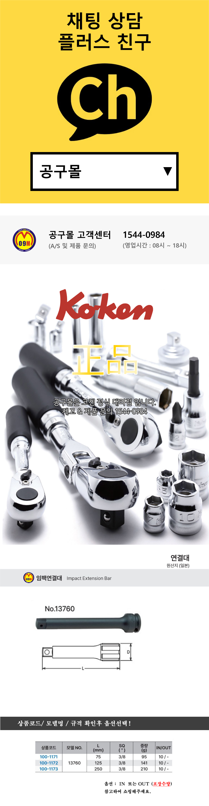 브랜드 : 코켄.com (KOKEN) 공구몰,소켓세트 / 연결대2601