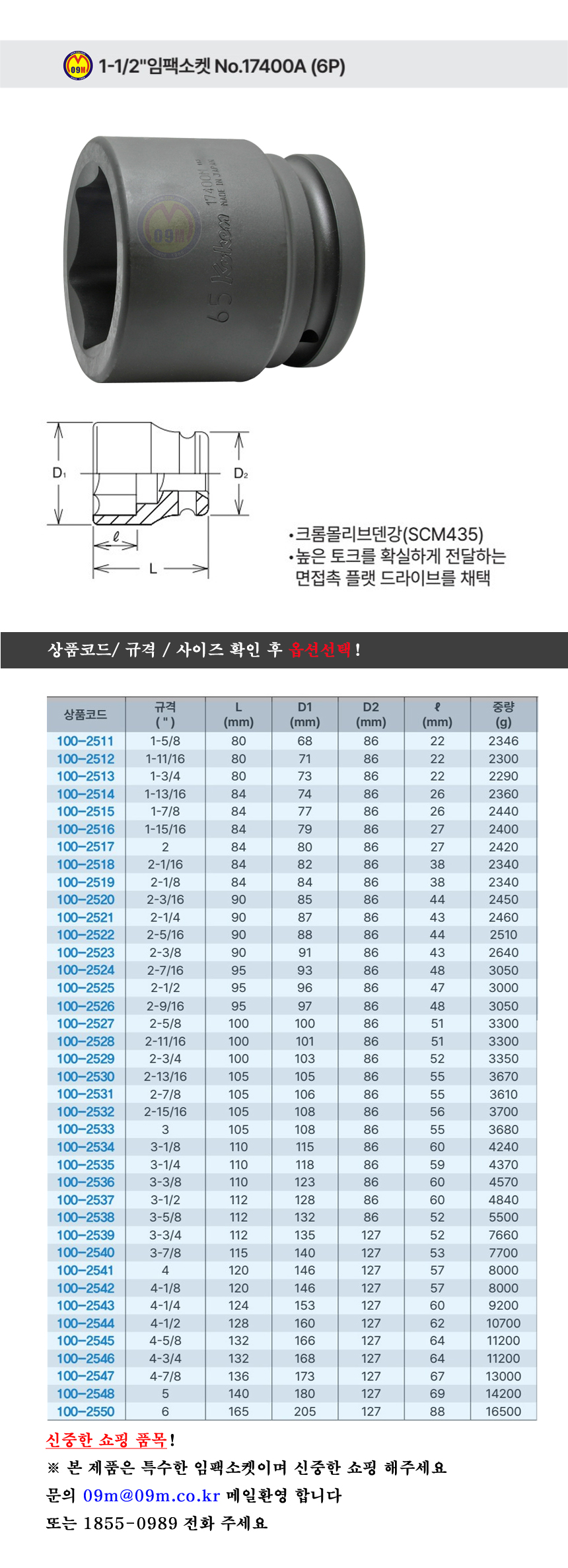 코켄 임팩소켓 17400A 6P 1-1/2x(1-5/8, 2-9/16nch) KOKEN, 대형소켓 100-2511